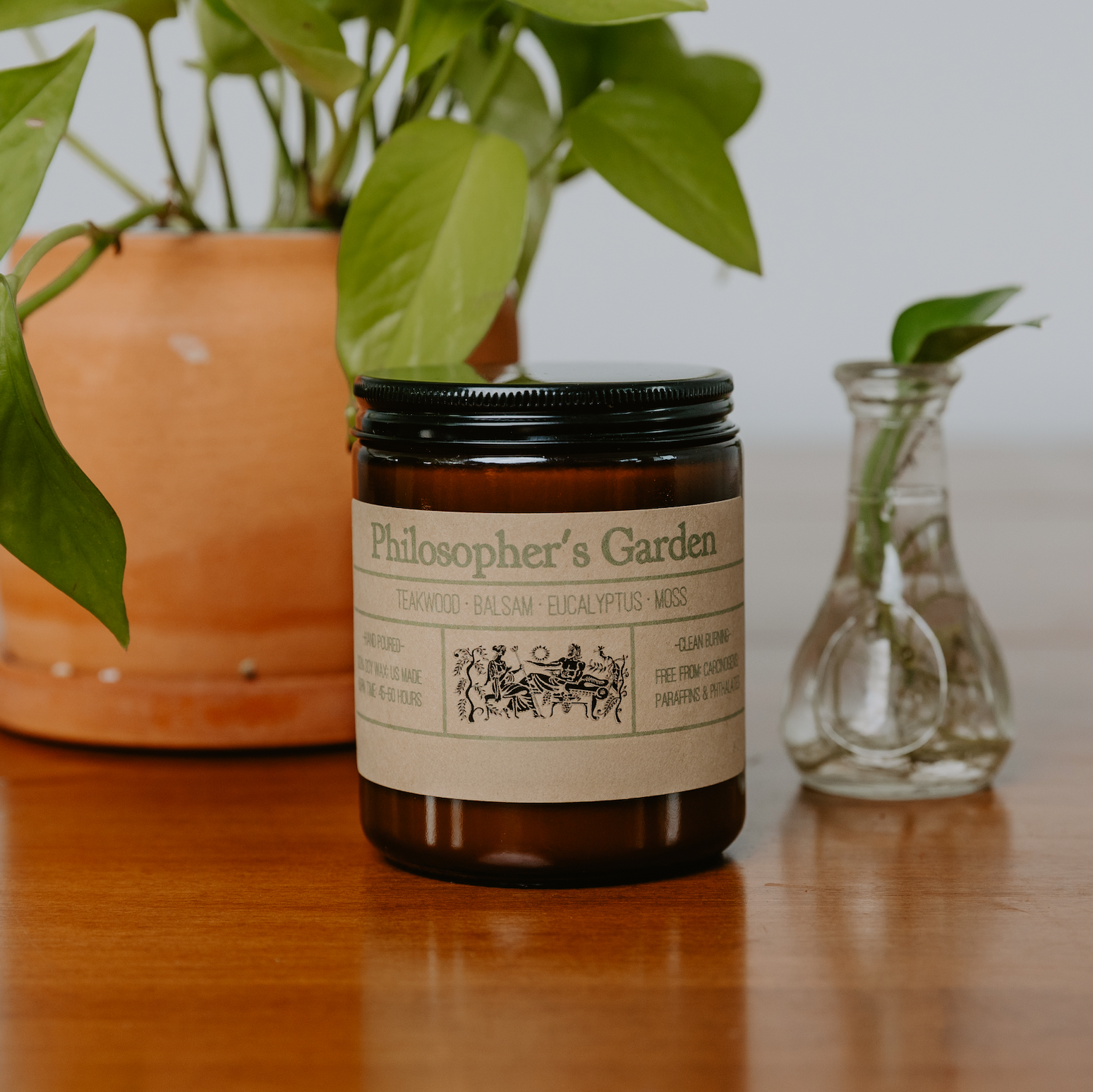 Step into a place where thought grows slowly and nature speaks in hushed tones. Philosopher’s Garden is a contemplative blend of teakwood, balsam, eucalyptus, and moss—earthy, grounding, and quietly complex.