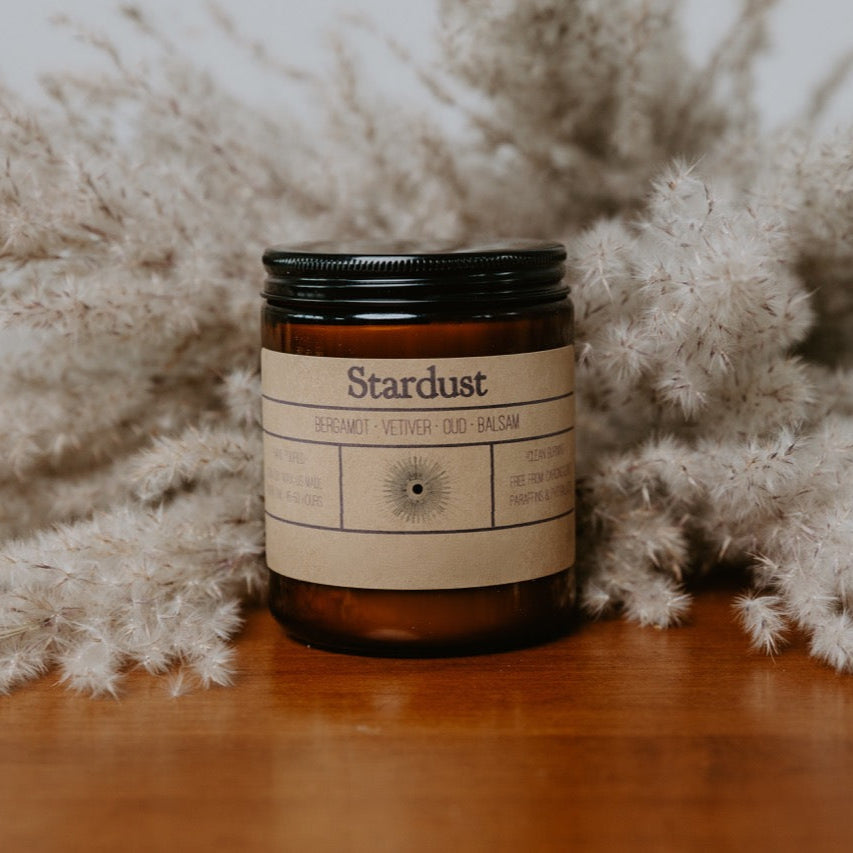 Mysterious and magnetic, Stardust is a candle that feels like a midnight sky wrapped in velvet. Sparkling bergamot flickers like distant stars before giving way to the earthy pull of vetiver and the deep, smoky richness of oud. A touch of balsam lingers like a warm breath on a cool night.